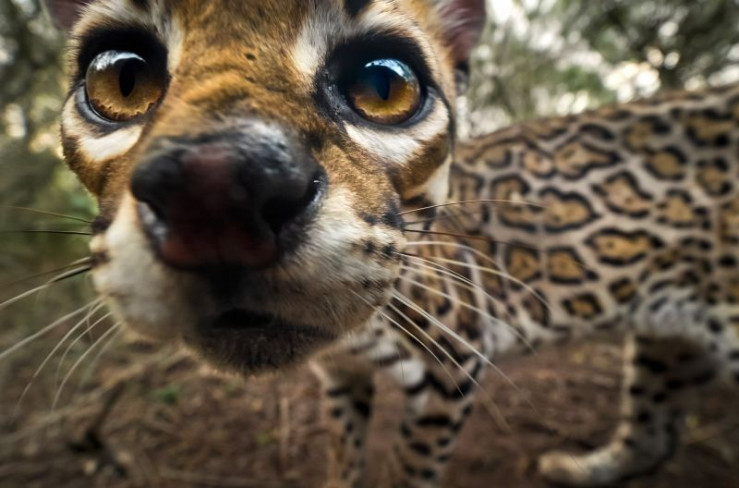Aus nächster Nähe inspiziert ein Ozelot die Kamerafalle der Filmcrew.