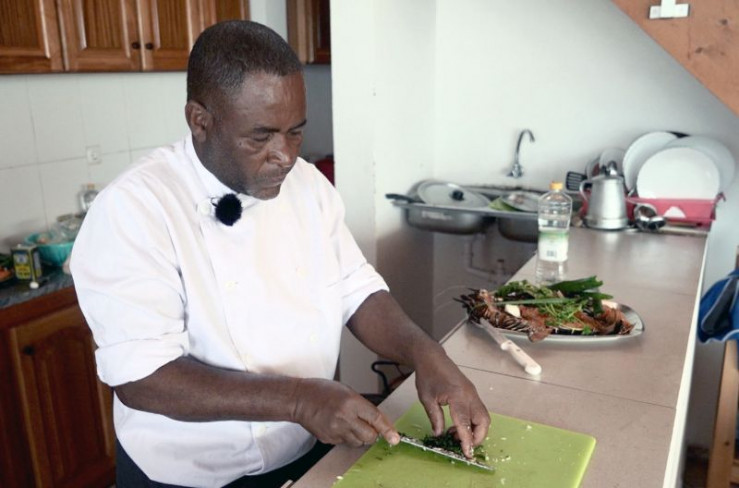 Chefkoch Elizeu Almeida Coutinho empfiehlt, die gegrillte Languste mit Blick auf das Meer zu genießen.
