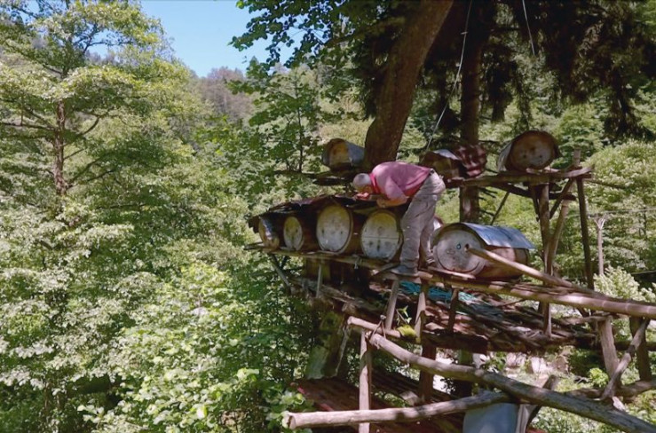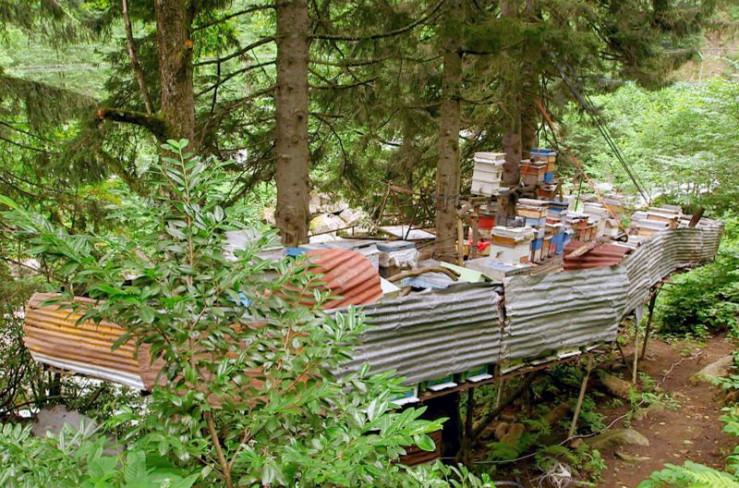 Die modernen Bienenstöcke sind in der Höhe angebracht, damit sie vor Honigdieben wie Bären geschützt sind.