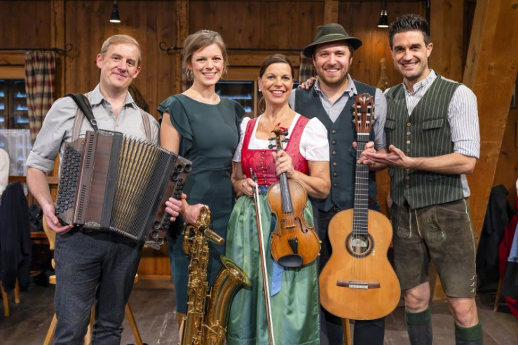 Die Musikgruppe Kobenzer Streich mit Traudi Siferlinger (vorne, links) und Dominik Glöbl (hinten, links).
