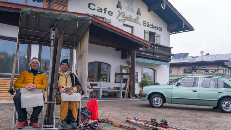 Der Skirennläufer Neureuther nimmt den Schmidt Max mit in seine Heimat. Nur übrig gebliebene Liftstützen und Kassenhäuschen erinnern heute an das ehemalige Skigebiet Wank in Garmisch-Partenkirchen. "Meine erste große Liebe", sagt Neureuther, "da habe ich mit zweieinhalb Jahren das Skifahren gelernt." Still geworden ist es rund um die alte Talabfahrt. Aber Kaiserschmarrn gibt es wie früher im tief verschneiten Alm-Gasthof.