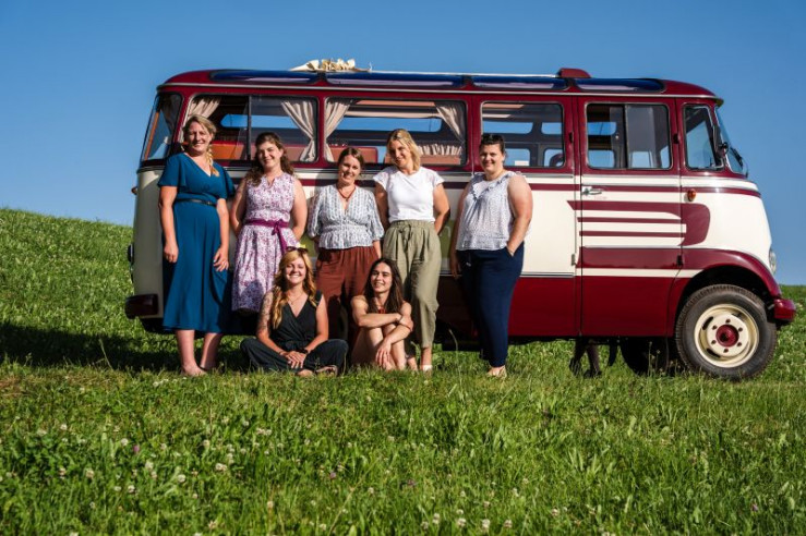 Alle Teilnehmerinnen der 17. Staffel von der "Landfrauenküche". Von links: Brigitte Hölzler, Veronika Kirchmaier, Petra Sollmann, Teresa Nitzl und Marina Laqua; vorne sitzend, von links: Franziska Herzing und Stefanie Weig.