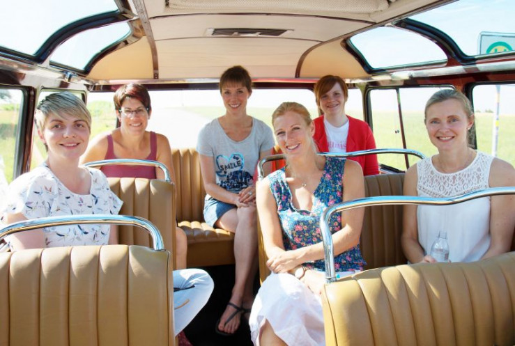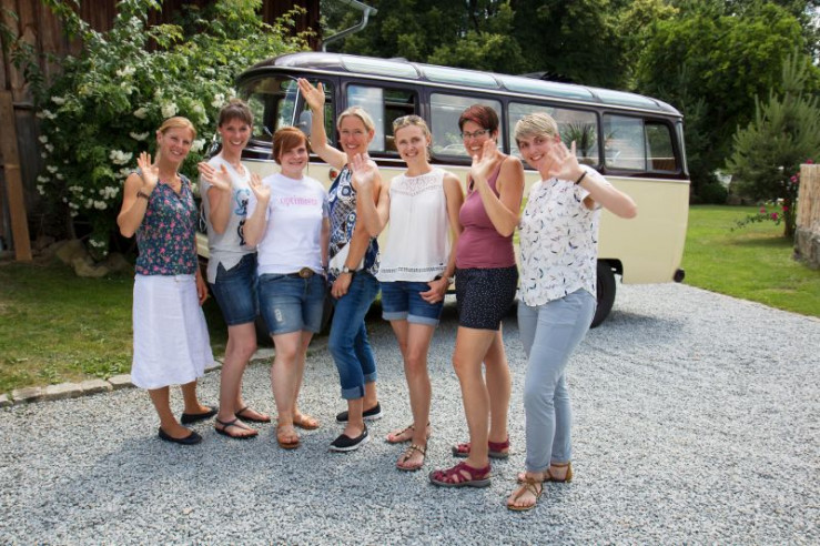 Die Gast-Landfrauen im Bus. Von links: Barbara Weiherer, Ute Leyh, Maren Flessenkemper, Irmi Lamprecht (vorn), Monika Meinel-Hansen und Katarina Stahl.