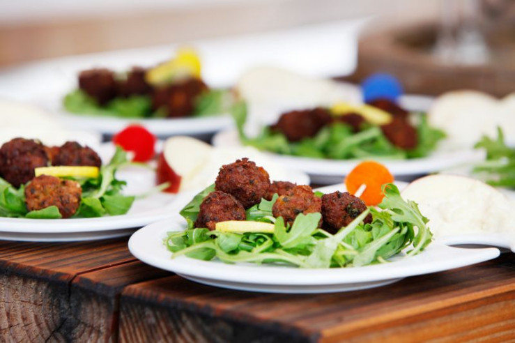 Die Vorspeise ist serviert: Grillgemüse mit Ziegenkäse und Apfel-Balsamico Chutney.