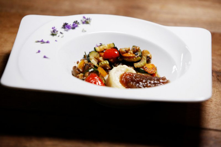Die Vorspeise: Grillgemüse mit Ziegenkäse und Apfel-Balsamico Chutney.