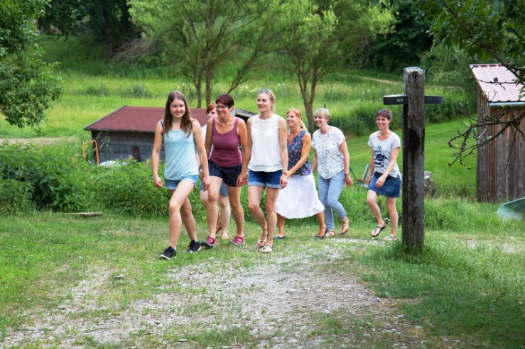 Tochter Antonia zeigt den Landfrauen den Hof.