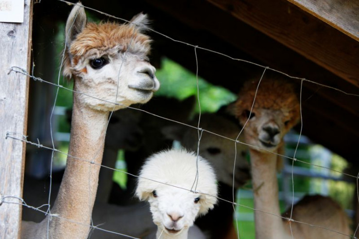 Drei Alpakas auf dem Hof von Sonja Schreiber.