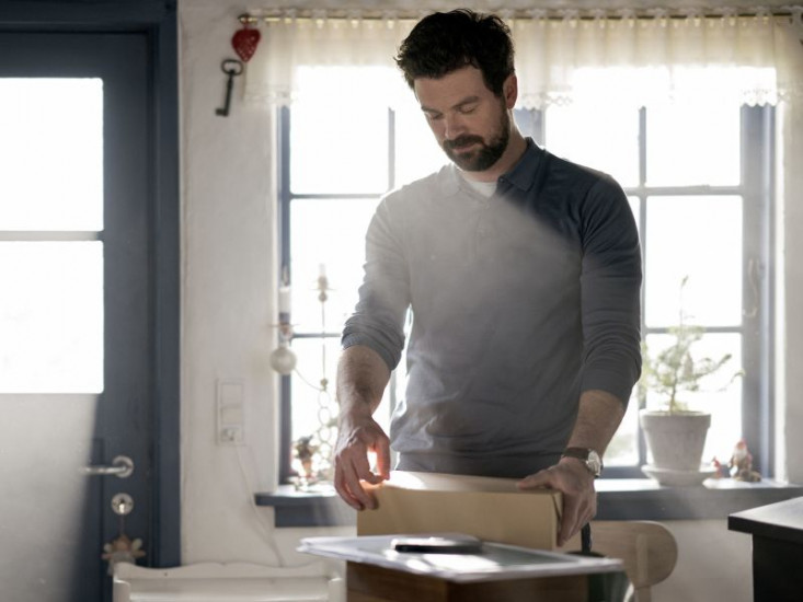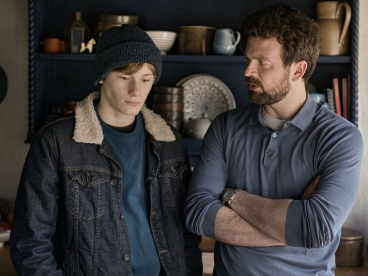 Lasses Vater Mikkel (Martin Bo Lindsten, rechts) ist sicher, dass Schwimmen eine großartige Möglichkeit ist, neue Freunde zu finden. Aber Lasse (Albert Rosin Harson) vermisst Kopenhagen und will nicht auf dem Land leben.