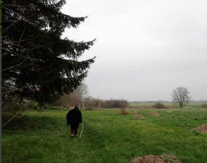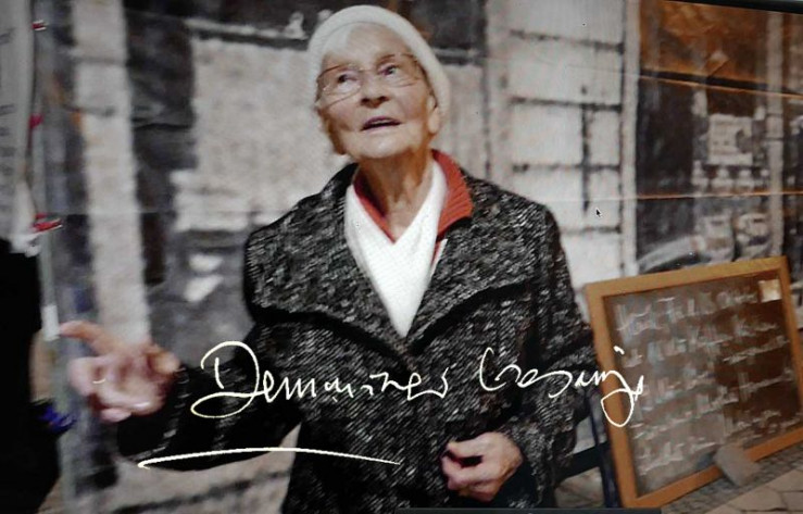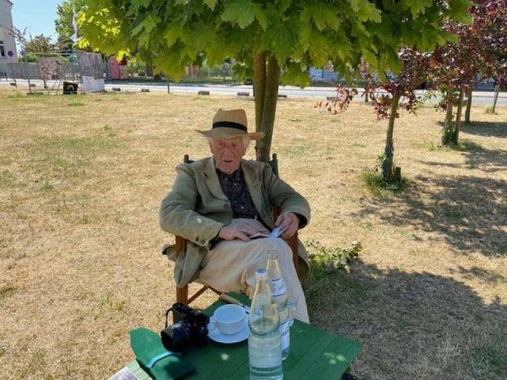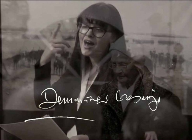 Der im Krieg völlig zerstörte Marktplatz von Demmin wird durch eine Kunstaktion symbolisch mit Leben erfüllt. Die Kleinstadt im Osten von Mecklenburg Vorpommern, wurde am Ende des 2. Weltkriegs von Kriegsgräueln heimgesucht. Der dort stattgefundene Massensuizid gilt als einer der größten in der deutschen Geschichte und führte zu einem kollektiven Trauma. Im Bild: Marlies Hamann.