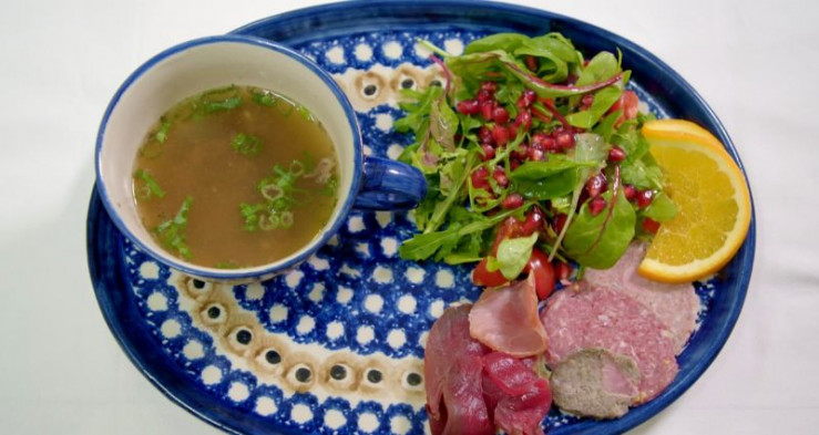 Martina verwendet für ihr weihnachtliches Drei-Gänge-Menü eigenes Fleisch und bekocht die Landfrauen mit Kesselsuppe, Salat und Wurstpotpourri. Zum Hauptgang tischt sie Rinderroulade im Pilzbett mit Serviettenknödeln auf. Mascarpone-Crème mit beschwipsten Früchten und Klemmkuchen serviert die leidenschaftliche Köchin zum Nachtisch.