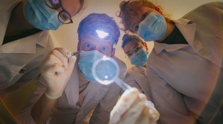 Key Visual zu Folge 2. Sebastian Winkler als Arzt bei einer Zeckenentfernung.