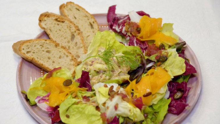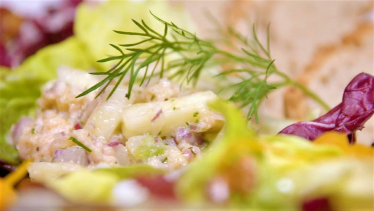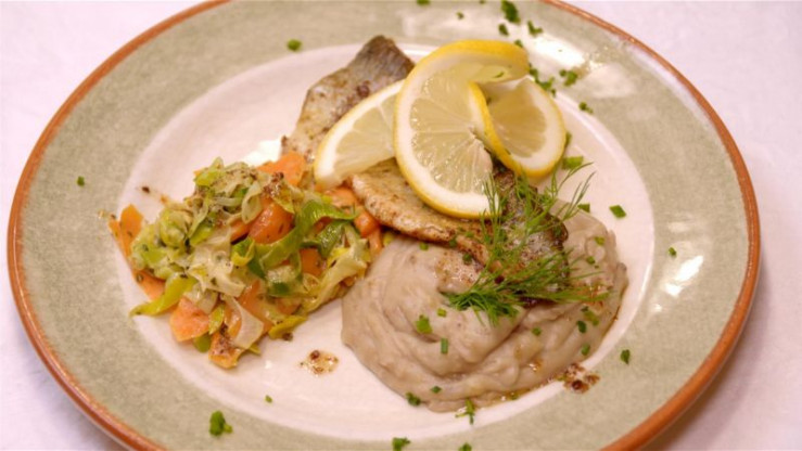 Catharinas Weihnachtsmenü besteht aus selbst gefangenem Fisch aus dem Nachbarort: Es gibt Tatar vom Saibling mit hausgemachtem Brot. Als Hauptgang Saibling im Steinpilzmantel an Kartoffelmaronenpüree und Karotten-Lauch-Gemüse. Zum Nachtisch serviert sie traditionelle Rohrnudeln mit Apfel-Hollerkoch, dazu Holundersorbet.