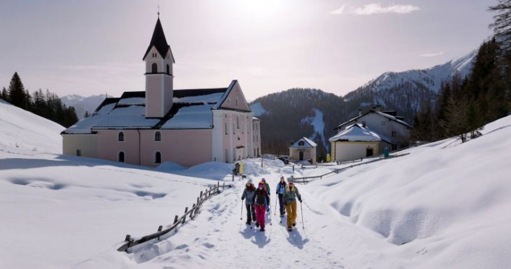Marion Chwojan mit einer Winterwandergruppe auf der Maria Waldrast.