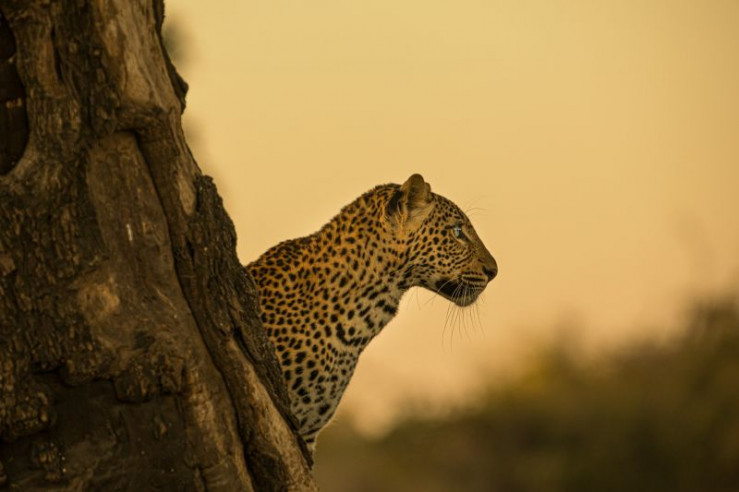 Das junge Leoparden-Männchen "Makumbi" betrachtet aufmerksam seine Umgebung.