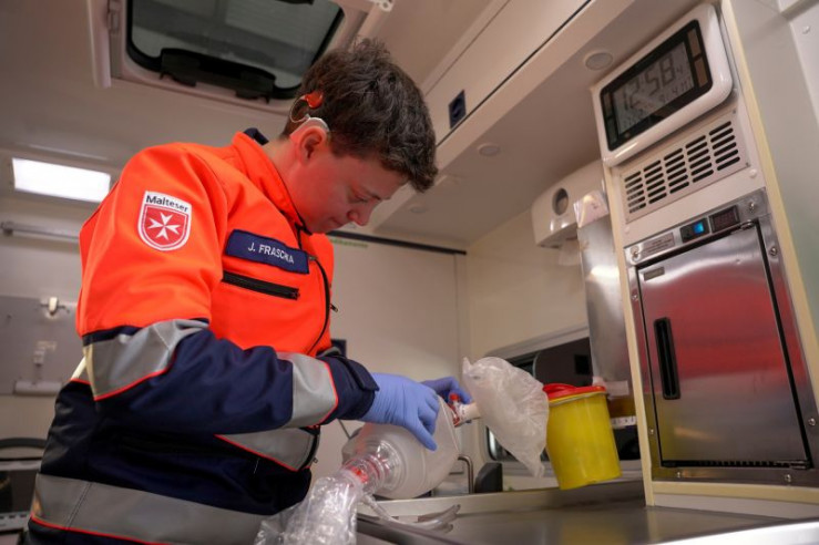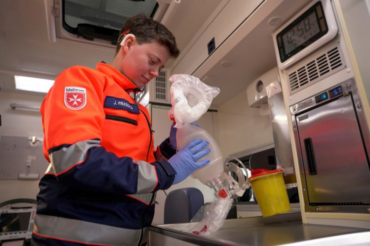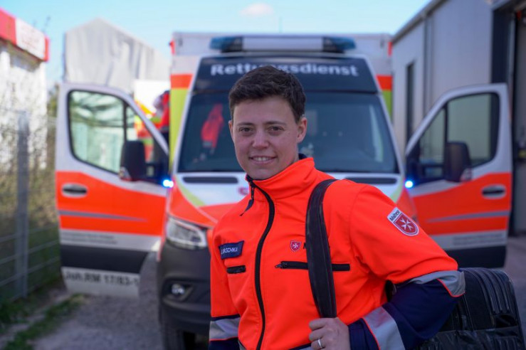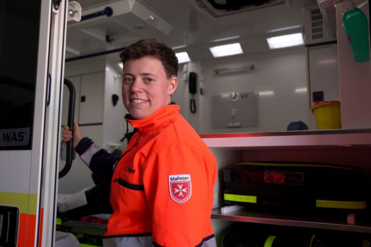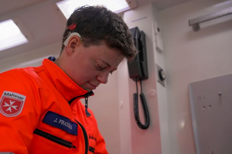 Julia Fraschka im Rettungswagen: Durch ihre Cochlea-Implantate kann sie als gehörlose Person im Rettungsdienst arbeiten.