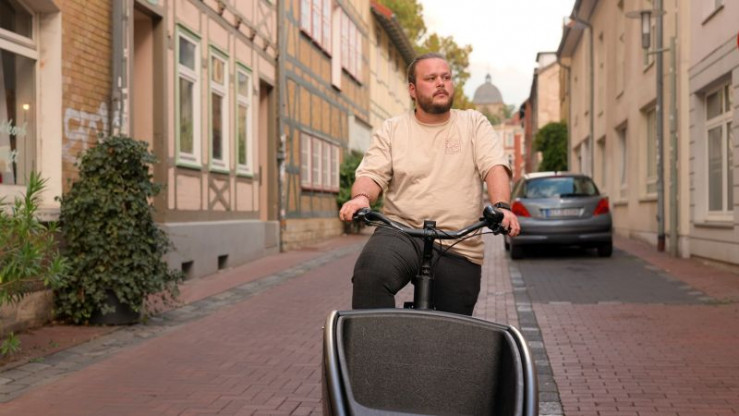 Lukas (27) fährt gerne mit seinem Lastenrad durch Göttingen, damit kommt er gut von A nach B.