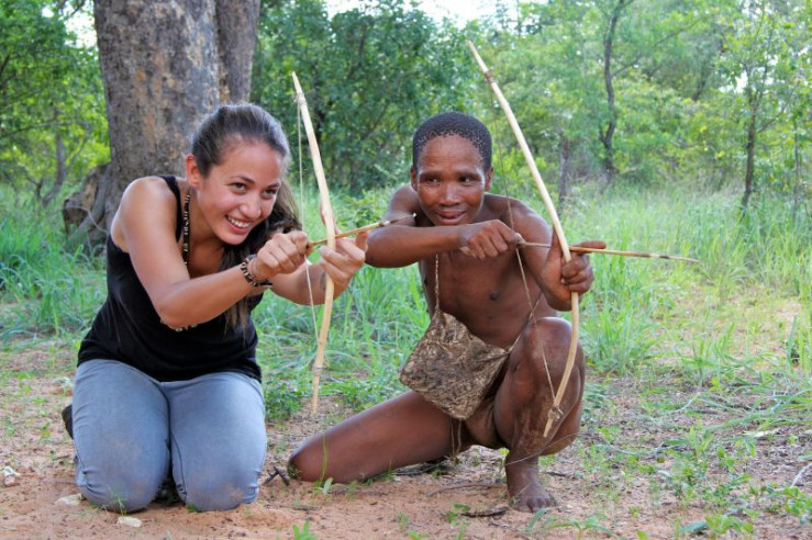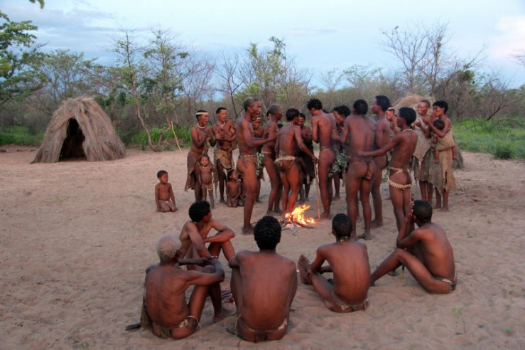 Ein einzelner San in westlicher Kleidung zückt seine Papiere, die ihn als Tourismus-Bevollmächtigten der Gemeinschaft ausweisen. Höflich fragt er nach dem Gruppenleiter und übergibt eine Mappe - in der Art einer Speisekarte - mit den kulturellen Angeboten und den dafür verlangten Preisen. Abgestuft nach der Anzahl der Touristen und der Anzahl der gewünschten Teilnehmer auf San-Seite: Von einer einfachen Dorfbesichtigung bis zum Trance-Tanz, der Teilnahme an einem Kurz-Workshop zur Schmuckproduktion aus Straußenei-Schalen, dem Training im Bogenschießen, der Teilnahme an einer traditionellen Jagd und letztlich der Verheiratung auf "Bushmen-Art" ist alles möglich. Jede Aktivität hat ihren fixen Preis, und genaue Angaben informieren über die Dauer und die Art der Leistung.