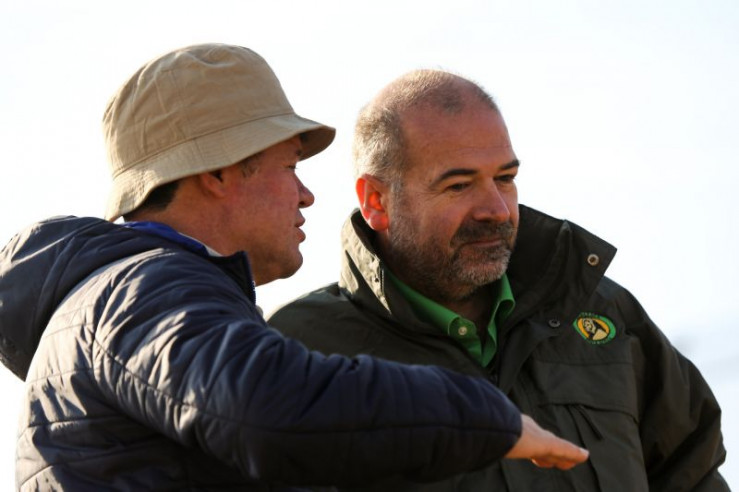 Regisseur u. Produzent Thomas Rilk (li.) im Gespräch mit Vier Pfoten Chef und Gründer Heli Dungler.