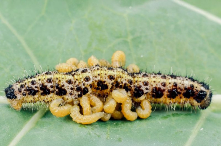Ein parasitierter Parasit: Die Brackwespe legt ihre Eier an die Raupe des Kohlweißlings, die die jungen Larven dann als Nahrungsquelle nutzen.