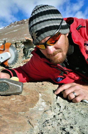 Dr. Nathan Smith untersucht ein Fossil auf dem Shackleton-Gletscher.