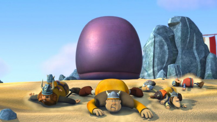 Kaum darf Faxe ausnahmsweise mal als Steuermann den Kurs des Drachenbootes bestimmen, taucht auch schon einer seiner geliebten Walfische auf und beginnt ein Wettrennen mit dem Wikingerboot. Das Rennen auf hoher See und in vollem Tempo macht allen solange Spaß, bis der Wal ein paar Felsen, die einer Insel vorgelagert sind, übersieht, schleudert und sich hilflos mitten auf einem Sandstrand wiederfindet. Können die Wikinger helfen? Sie strengen sich jedenfalls nach Leibeskräften an! Mit der ganzen Mannschaft versuchen sie, den Wal wieder in freies Wasser zu wuchten - vergeblich! Das Tier ist einfach zu schwer. Und es bleibt auch zu schwer, als unsere Freunde versuchen, den Wal mit dem Drachenboot aus seiner unglücklichen Position zu ziehen. Als es Nacht wird, bleibt ihnen nichts anderes übrig, als auf den nächsten Morgen und eine gute Idee zu warten. Und die gute Idee erreicht die Wikinger tatsächlich, denn in seinem nächtlichen Traum wird Wickie schlagartig klar, mit welchem schlauen Trick er das Leben des gestrandeten Wals retten kann.