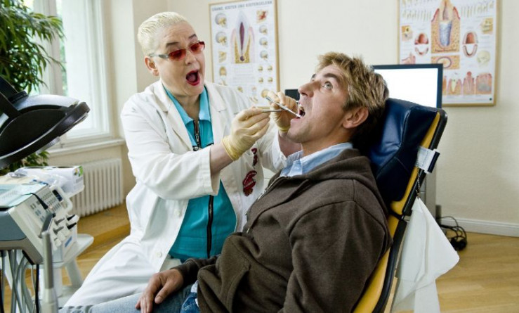Ob die Zahnärztin (Hella von Sinnen) ein Loch findet? Sie nimmt Fritz Fuchs (Guido Hammesfahr) Zähne genau unter die Lupe.