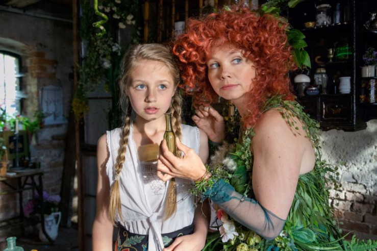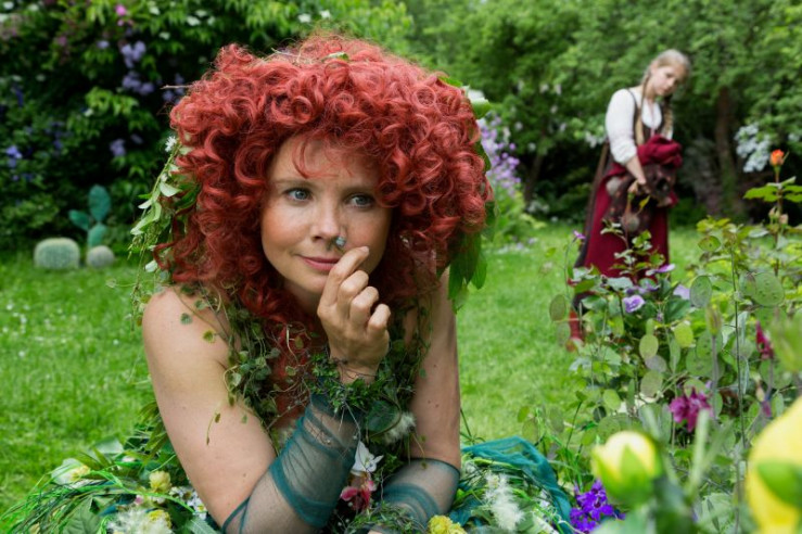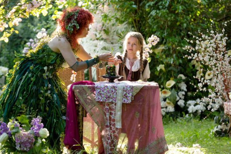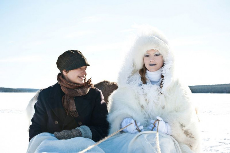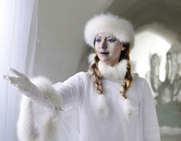 Die Schneekönigin (Linda Zilliacus) will, dass Kay (Kristo Ferkic) ihr ein Rosenhaus baut.