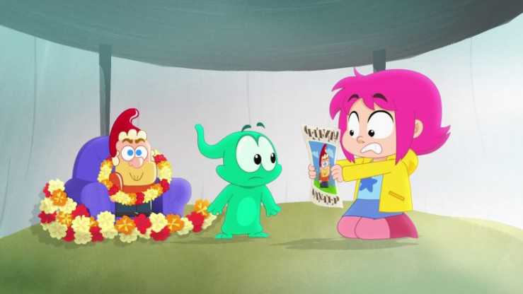Rebecca zeigt Ernest entsetzt eine Suchanzeige. Der Gartenzwerg, den sie gefunden haben, gehört dem Schulhausmeister. Nun denkt dieser sicher, sie hätten ihn gestohlen!