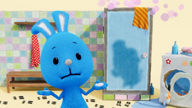 Kikaninchen putzt gerade das Bad, als es seltsame Hufabdrücke entdeckt. Es folgt den Spuren bis zur Dusche. Wer ist wohl der unbekannte Duschgast?