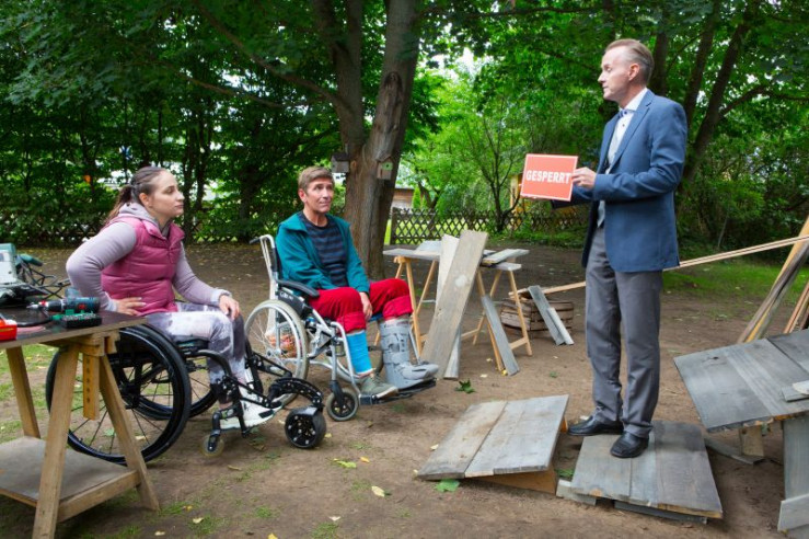 Nach einem Sturz muss Fritz für einige Wochen im Rollstuhl sitzen. Egal ob Bauwagentreppe oder hohe Regale im Supermarkt, plötzlich gibt es viele Hindernisse in Fritz' Leben.