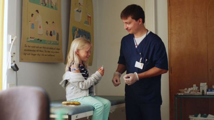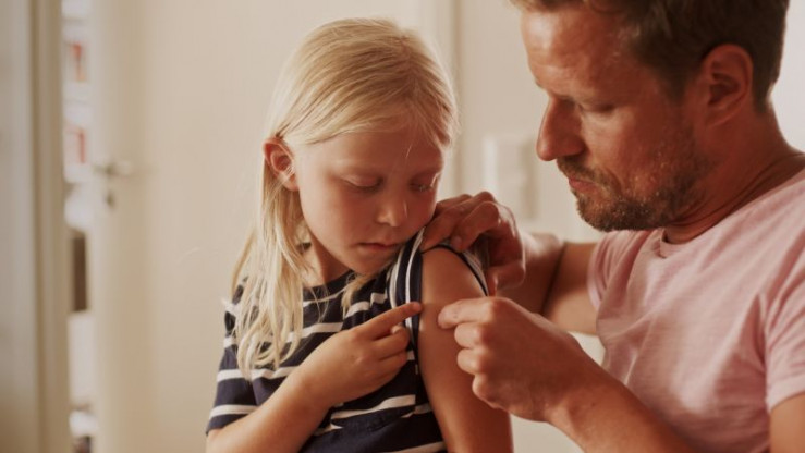 Vilda (Sofia Sittnikow) hat Angst vor der Impfung. Ihr Vater (Peter Kanerva) versucht sie zu beruhigen.