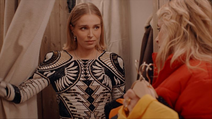 Mina (Julie Van den Steen, l.) braucht für das Date mit Jens ein neues Outfit. Ihre Schwester Babs (Ruth Beeckmans, r.) berät sie im Geschäft bei der Auswahl der Abendgarderobe.