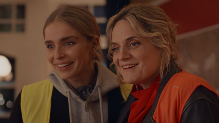 Daffy (Lize Feryn) und Elias (Junes Callaert) freuen sich, dass Minas frühere große Liebe Mathias plötzlich vor der Tür steht.