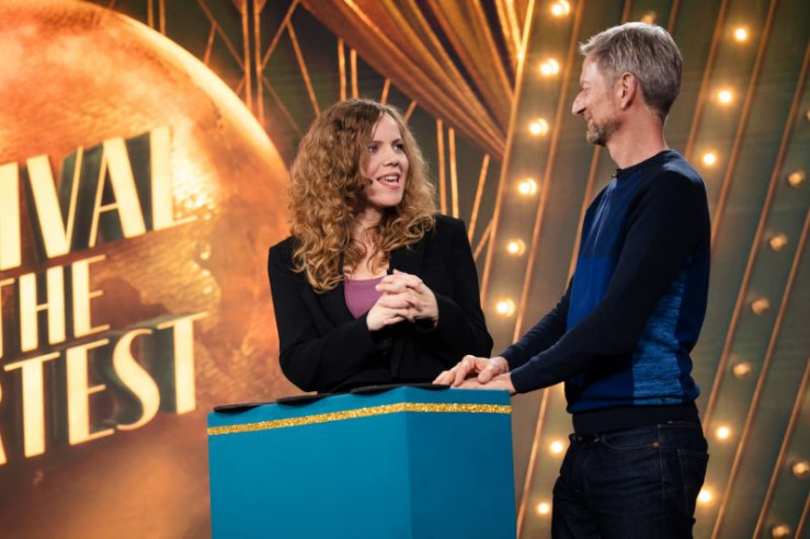 Spiel Nummer eins: "Faking News" - Die beiden Teams müssen Fehlinformationen in Medieninhalten identifizieren - per Fernbedienung stoppen, bewerten und punkten
