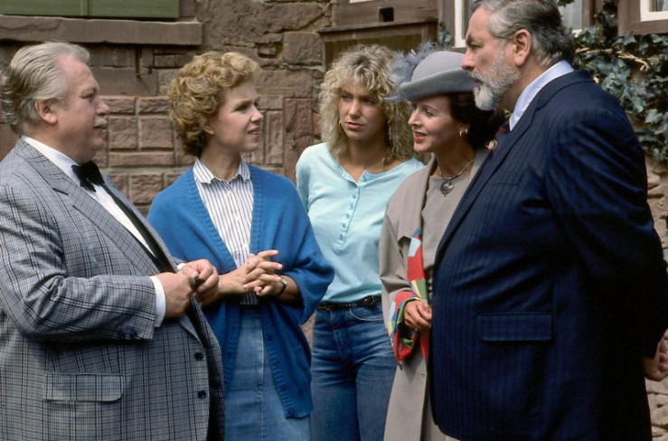 Veras (Witta Pohl, 2.v.l.) Tochter Marion (Sabine Kaack, M.) will mit Hilfe des Brauereibesitzers Berning (Hans Wyprächtihger, r.) ein Lokal eröffnen. Onkel Ludwig (Günter Strack, l.) aber ist überaus skeptisch. Frau Berning (Brigitte Goebel, 2.v.r.) ist zuversichtlich.