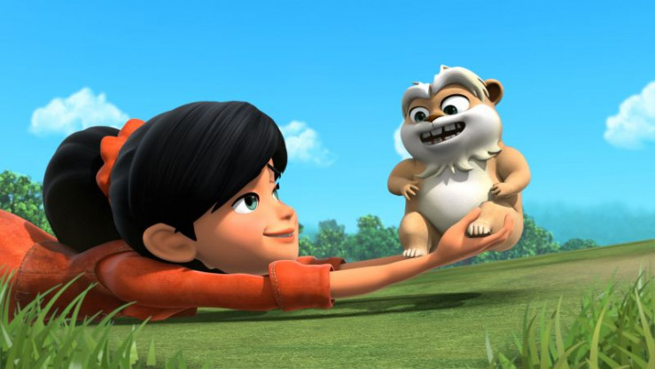 Marian (2.v.l.) versichert Stig (l.) dass es sich bei Derke nur um ihren harmlosen Hamster mit dem Namen Plätzchen handelt. Scarlett (r.) und Little John (2.v.r.) bestätigen das.