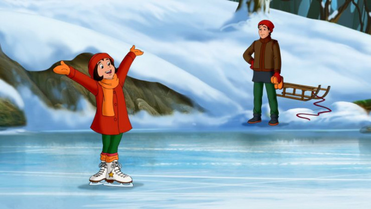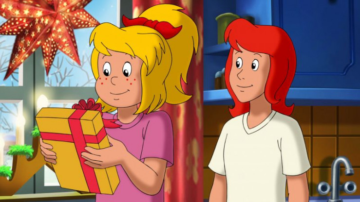 Zu Weihnachten besucht Bibi ihre Freundin Tina. Sie will ihr Schlittschuhe schenken, passend zum Eislaufwettbewerb auf Schloss Falkenstein. Leider vergisst sie am Bahnhof das Paket.