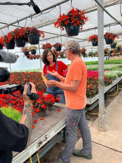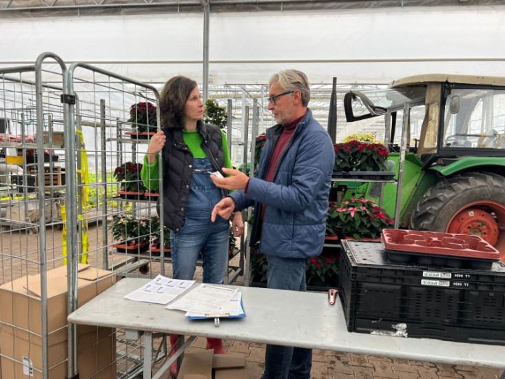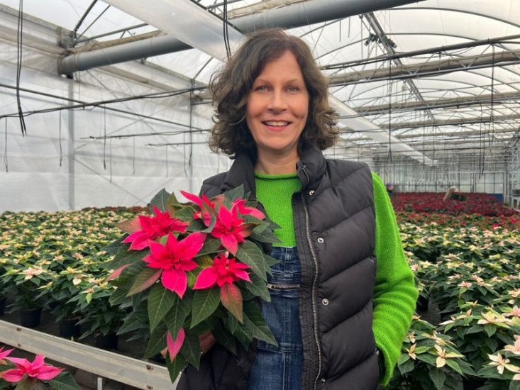 Ein weihnachtlicher Anblick für die Journalistin, Sabine Platz, während des Gesprächs mit dem Inhaber der Bio-Gärtnerei Umbach in Heilbronn