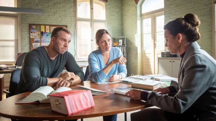 Hotelchefin Johanna Röhl (Eva Blum, r.) steht unter Verdacht, die Rentnerin Ingrid Petersen umgebracht zu haben. Zum einen ist sie im Besitz einer gestohlen gemeldeten Uhr, die eigentlich dem Opfer gehört. Zum anderen sind ihre Fingerabdrücke im Haus der Toten sichergestellt worden. Bisher sind dies jedoch alles nur Indizien. Können die Kommissare Lars Pöhlmann (Dominic Boeer, l.) und Karoline Joost (Nike Fuhrmann, M.) Eva Blum überführen?