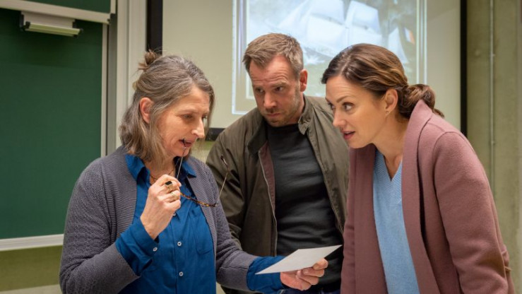 Karoline Joost (Nike Fuhrmann, r.) und Lars Pöhlmann (Dominic Boeer, M.) haben einen Termin mit der Kunstwissenschaftlerin Mechthild Ayinger (Gundi-Anna Schick, l.). Vermutlich ist aus dem Haus der Toten ein Gemälde gestohlen worden. Doch bisher ist unklar, ob das Bild tatsächlich von Wert ist. Kann die Frau den Kommissaren mit ihrer Expertise weiterhelfen? Wird so endlich das Motiv für den Einbruch in Ingrid Petersens Haus und den Mord an ihr klar?