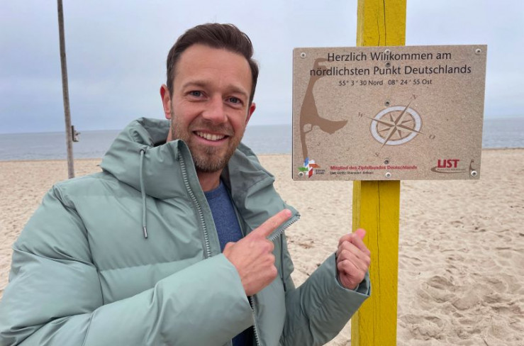 Arnd Reisenbichler am nördlichsten Punkt Deutschlands auf der deutschen Insel Sylt.