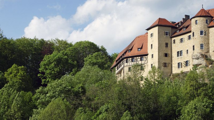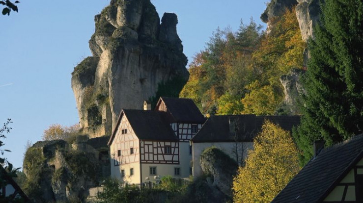 Das Dorf Tüchersfeld wird von einer imposanten Felsburg beherrscht.