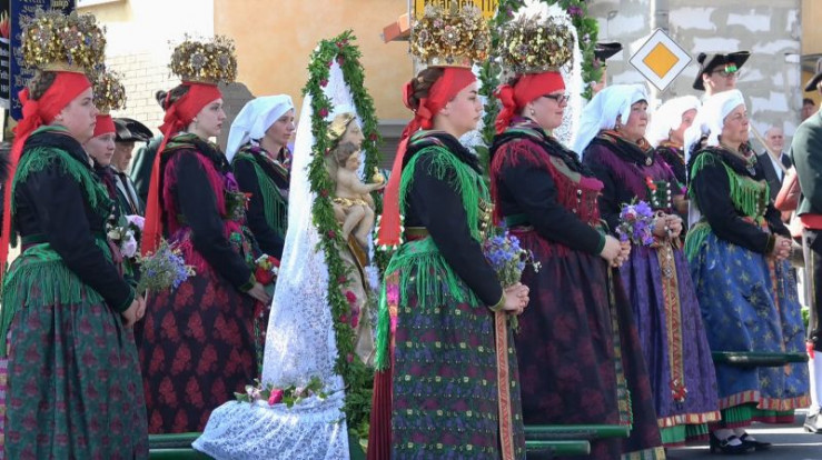Frohenleichnahmprozession in ortstypischer Tracht in Effeltrich, dem "Musterdorf fränkischer Tracht".