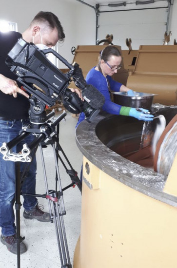 Wenn Susan Tutzschky ihre Maschinen anwirft, hat das wenig mit Chocolatier-Romantik zu tun. Die tonnenschweren Ungetüme aus DDR-Zeiten machen einen Höllenlärm. Sie produzieren aber dank bester Zutaten köstliche Schokolade. Die Maschinen aus Dresden hat Tutzschky übrigens gemeinsam mit ihrem Mann in Bulgarien aufgespürt und selbst saniert. Warum? "Weil man manchmal einfach wahnsinnig ist."