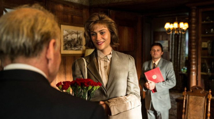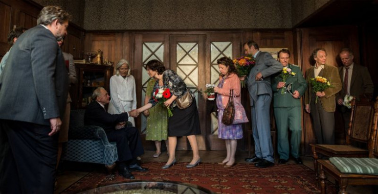 Kurt Umnitzer (Sylvester Groth) und seine Schwiegermutter Nadeschda Iwanowna (Nina Antonova) sind auf dem Weg zur Geburtstagsfeier von Willhelm Powileit.