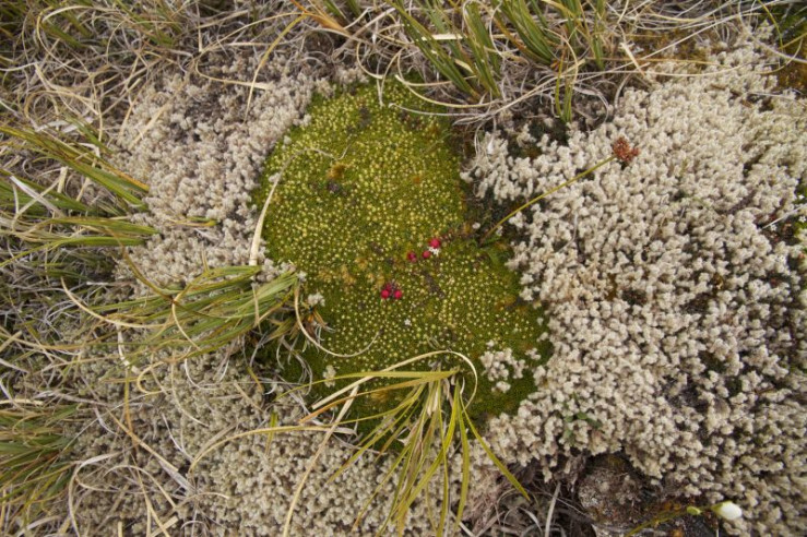 Hochmoor-Vegetation in den Murchison Mountains. Diese Blüten lieben die Keas.