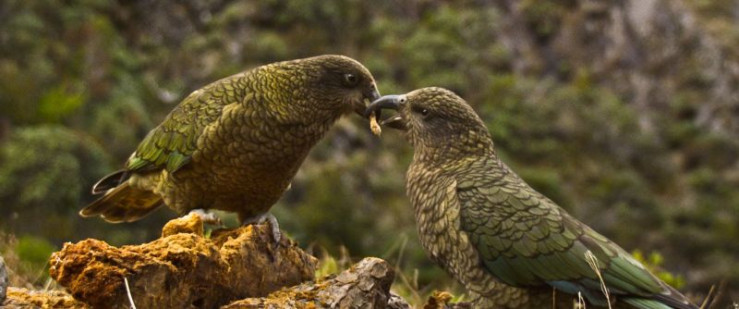 Keas sind extrem soziale Tiere. Sie teilen gerne unter Freunden. Doch wenn es ihnen zu viel wird, halten sie auch Distanz.