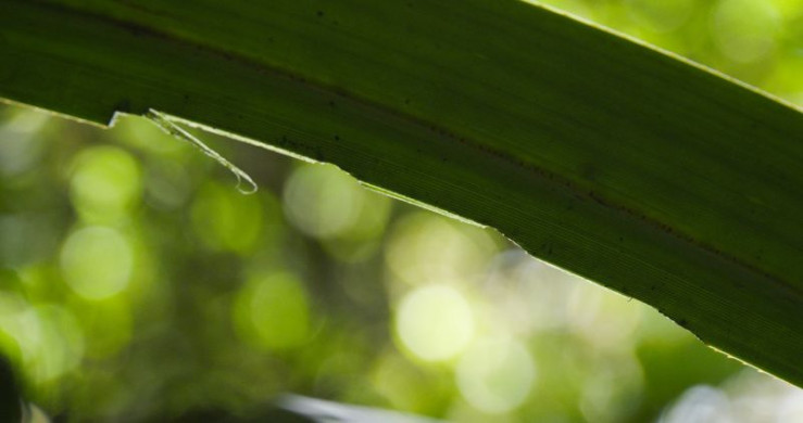 Ein Pandanus-Blatt aus dem sich eine Neukaledonische Krähe ein Angel-Werkzeug gebaut hat.