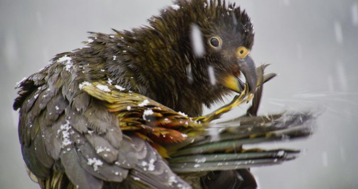 Keas sind die einzigen Papageien, die auch in Eis und Schnee leben.