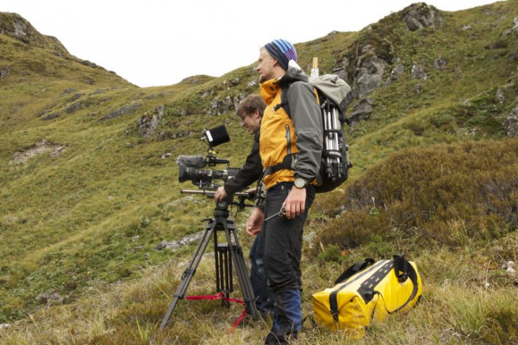 Kameramann Brian McClatchy und Assistent Matthew Goodman hoch in den Bergen der Murchison Mountains.